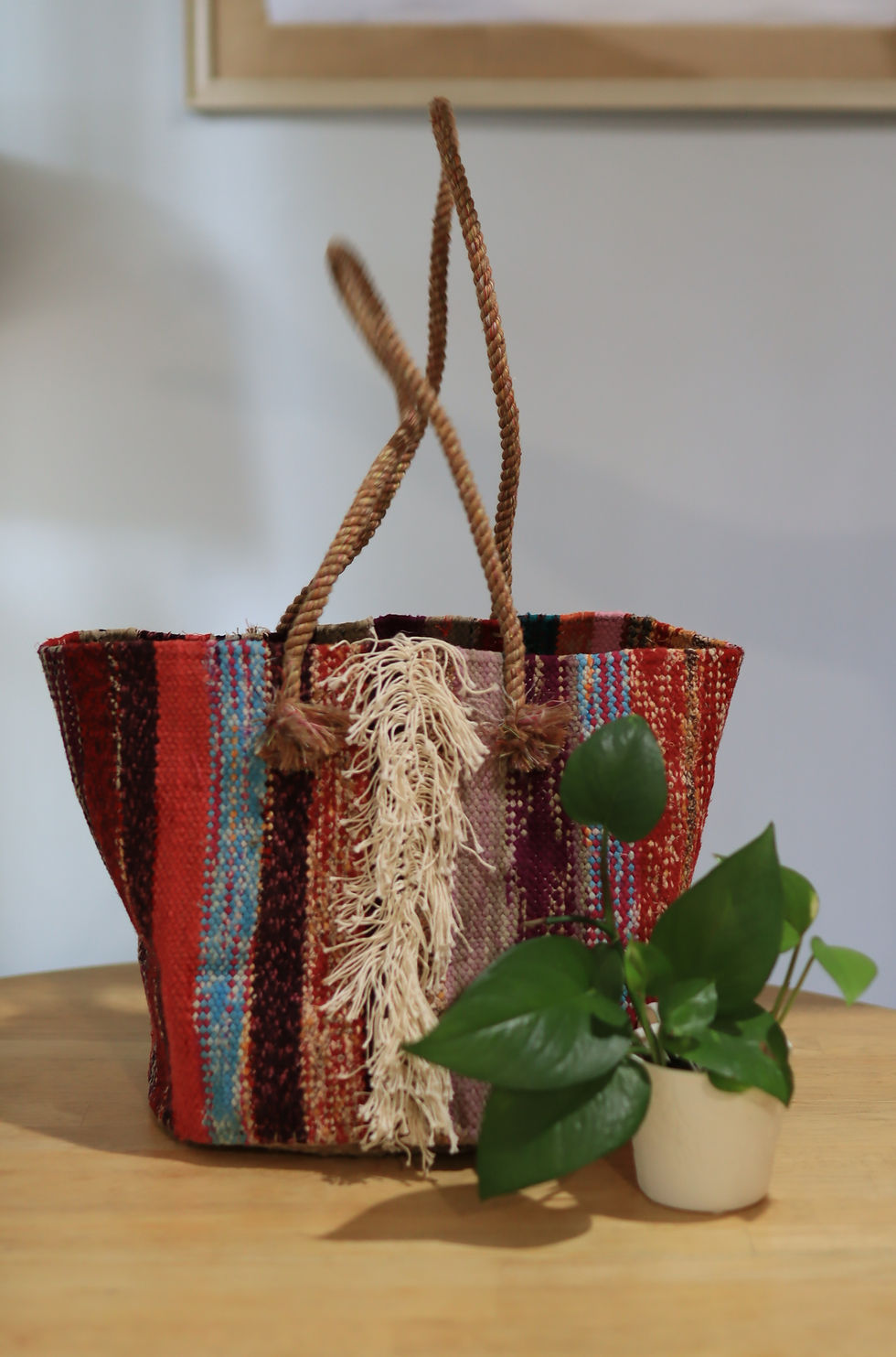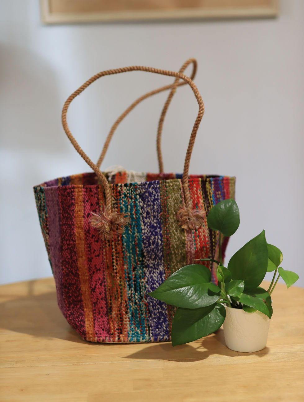 Crafted from natural jute and upcycled cotton sarees, our bags are the perfect blend of sustainability and style. Lightweight and spacious, they’re designed to carry all your essentials with ease.
